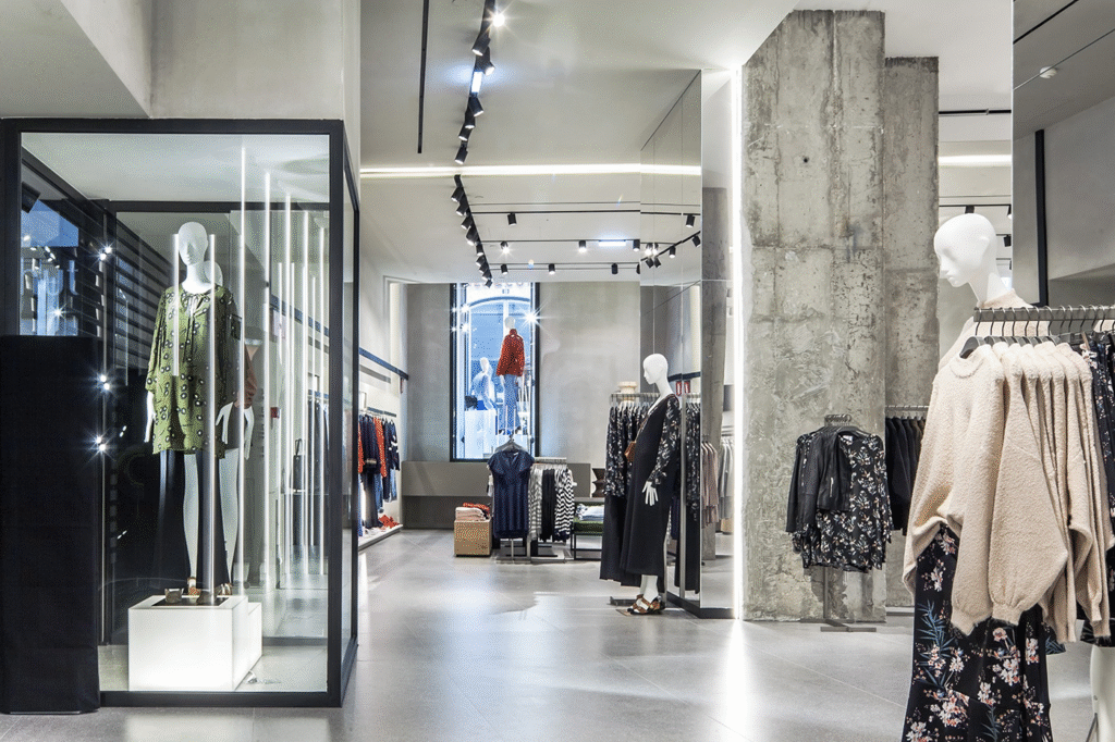 A megastore tem uma decoração simples e minimalista, sendo que as roupas estão dispostas dentro de conceitos, desde as peças tendência às roupas para o escritório. A Mango planeia abrir ainda uma outra megastore na zona dos Restauradores, no local onde funcionava a Loja do Cidadão.